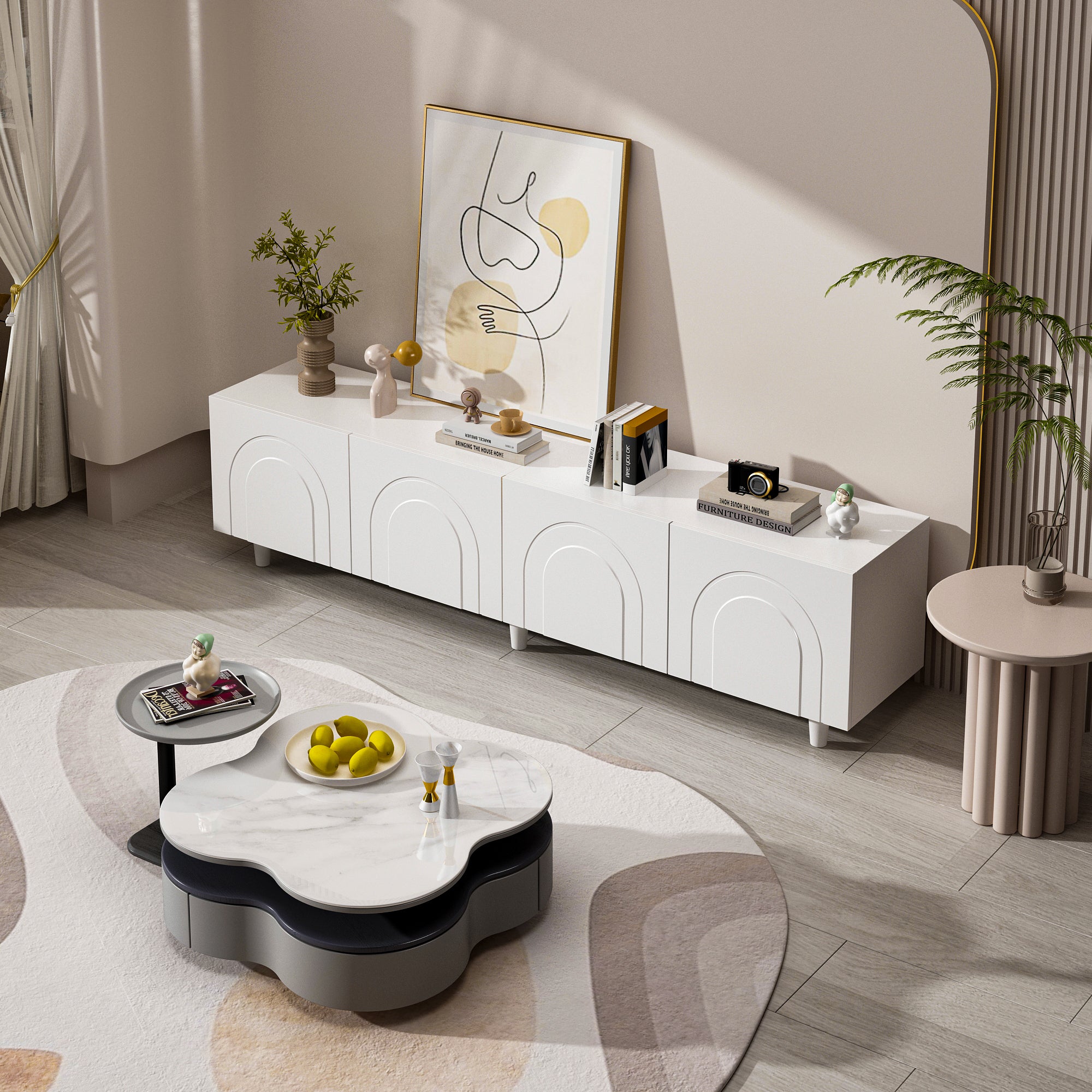 63" Modern Sideboard with Gold Legs and Fluted Doors, Buffet Cabinet for Entryway or Living Room