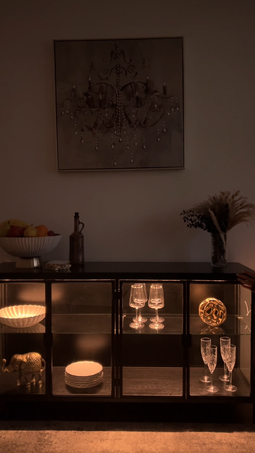 61.4"W Food Pantry Cabinet With Glass Door Wine Storage
