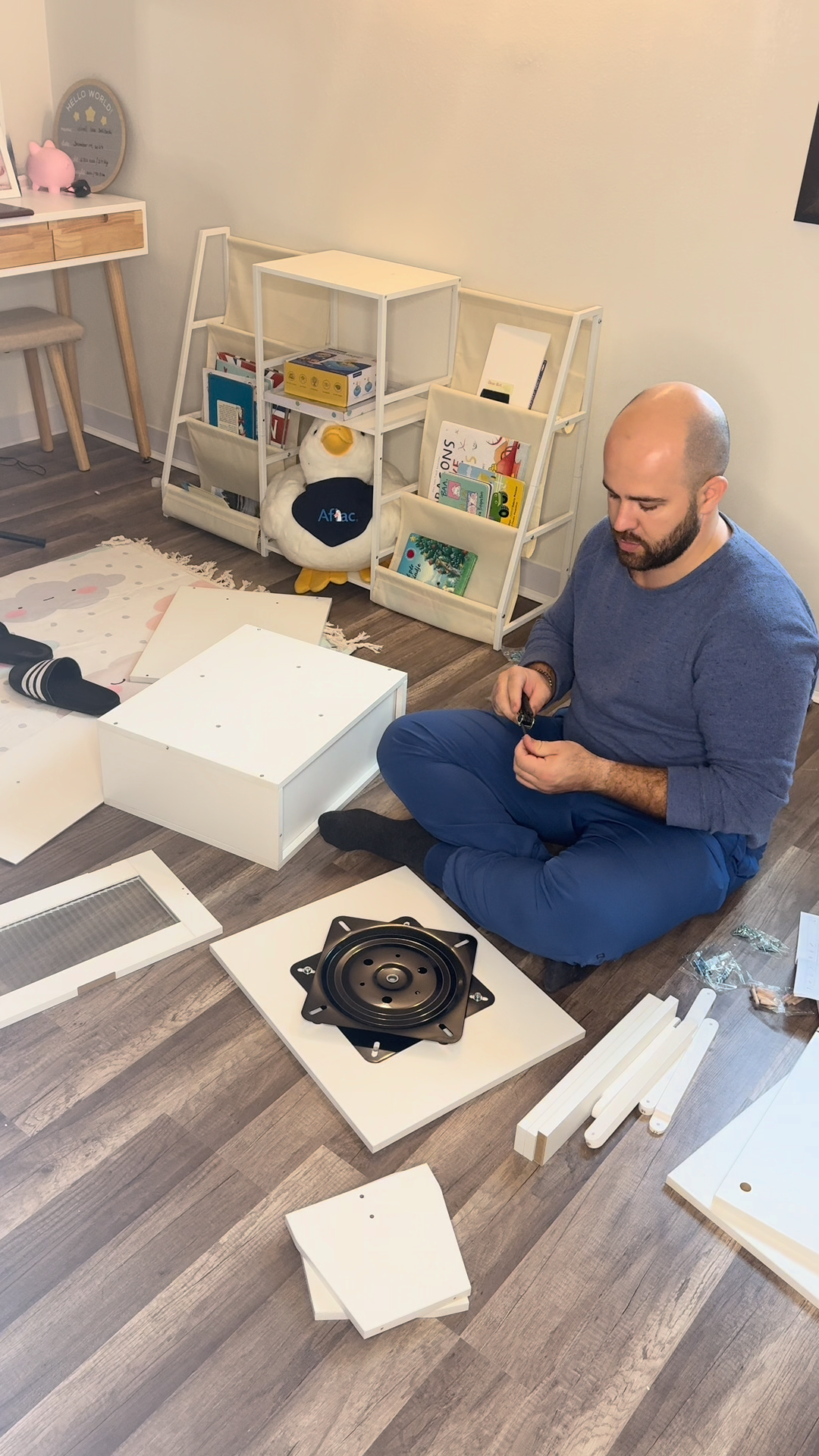 Storage Nightstand Chest 3 Drawers Cabinet in Bedroom with Metal Parts
