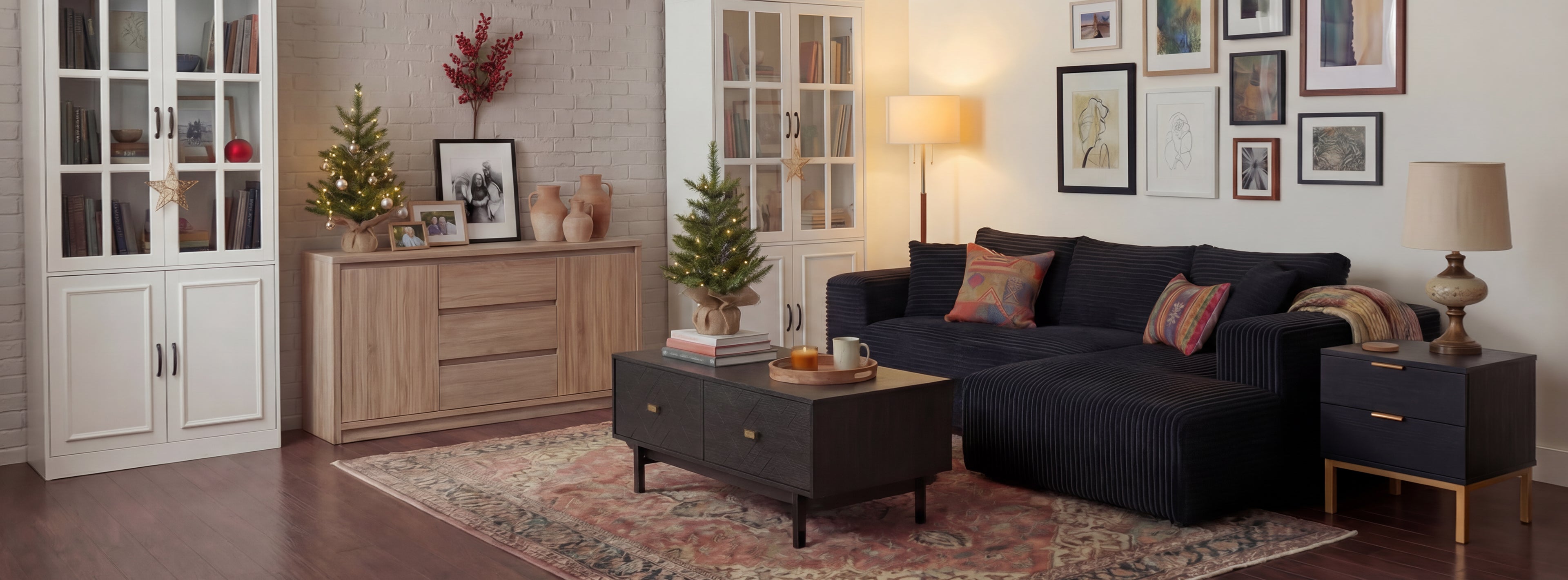 Display Cabinet Bookshelf with 2 Drawers and Glass Doors