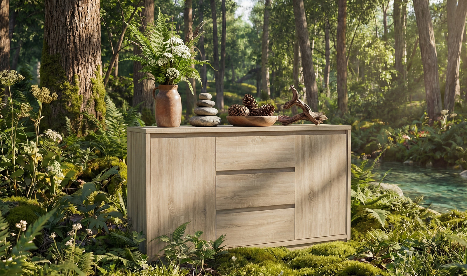 Buffet Bar 3 Drawers & 2 Doors Sideboard Storage Buffet Cabinet Credenza Coffee Bar