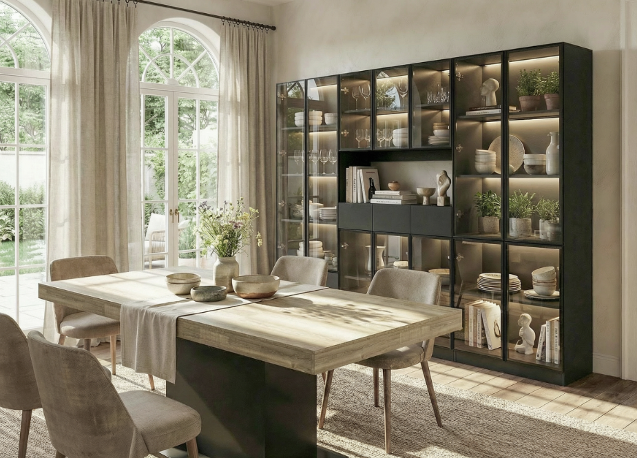Display Cabinet Bookcase with Lights and Glass Doors
