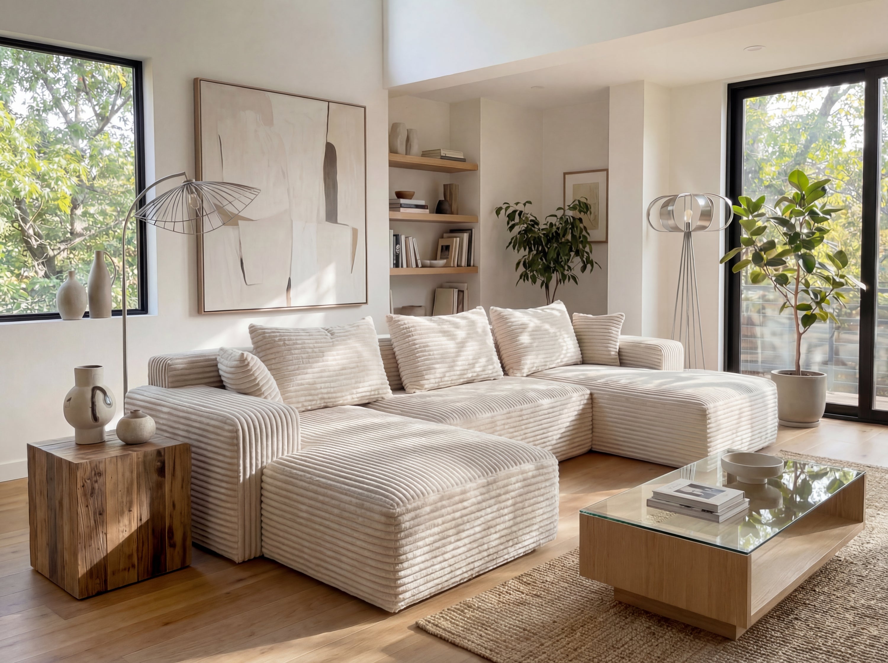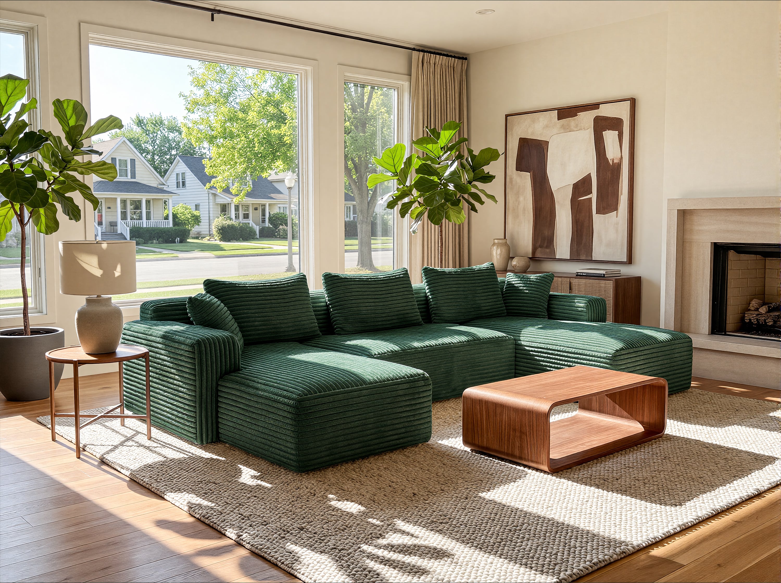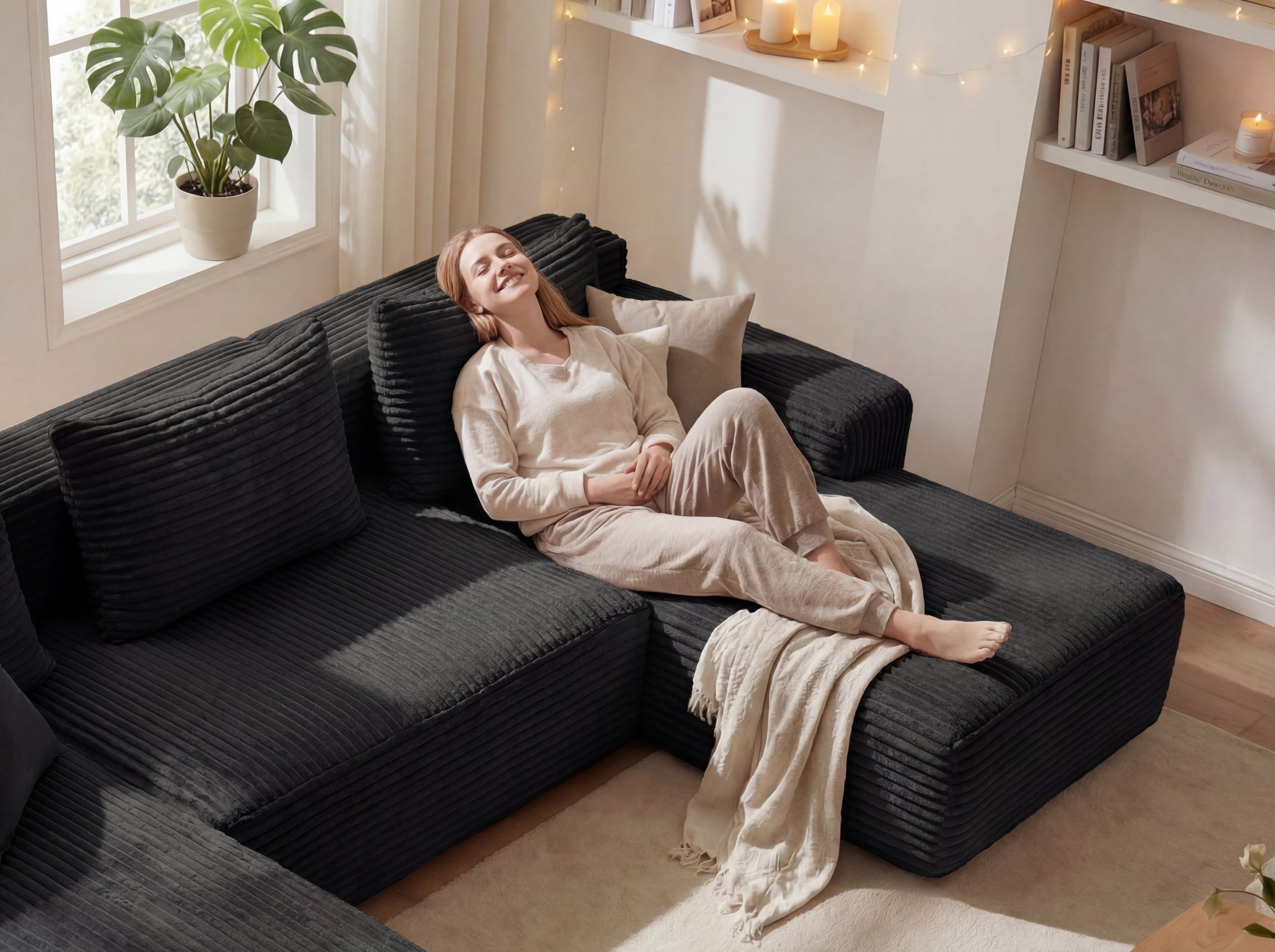 Turn your living space into a cozy, flexible gathering spot with this configurable 3-piece sectional sofa. It includes a left chaise, right chaise, and center armless seat, which can seat up to 7 people. It's wrapped in cloud-soft high-density corduroy, and its ergonomic cushions stay supportive even during long movie nights. Whether you're fitting it in a compact apartment, styling a spacious living room, or hosting a relaxed movie night with friends, this sofa adapts perfectly to your space and moments.