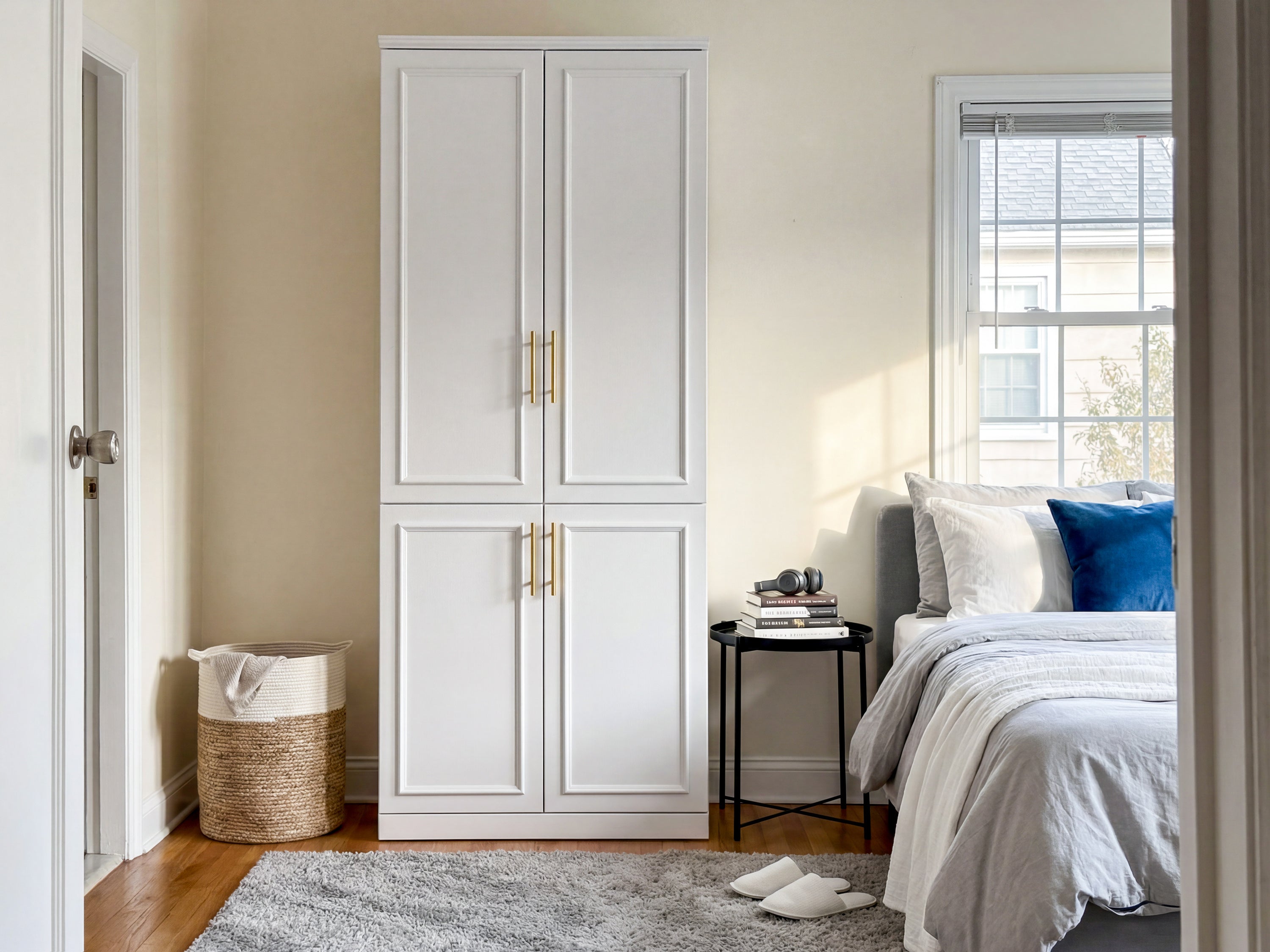 31.7 inches Modern White 4-Door Armoire