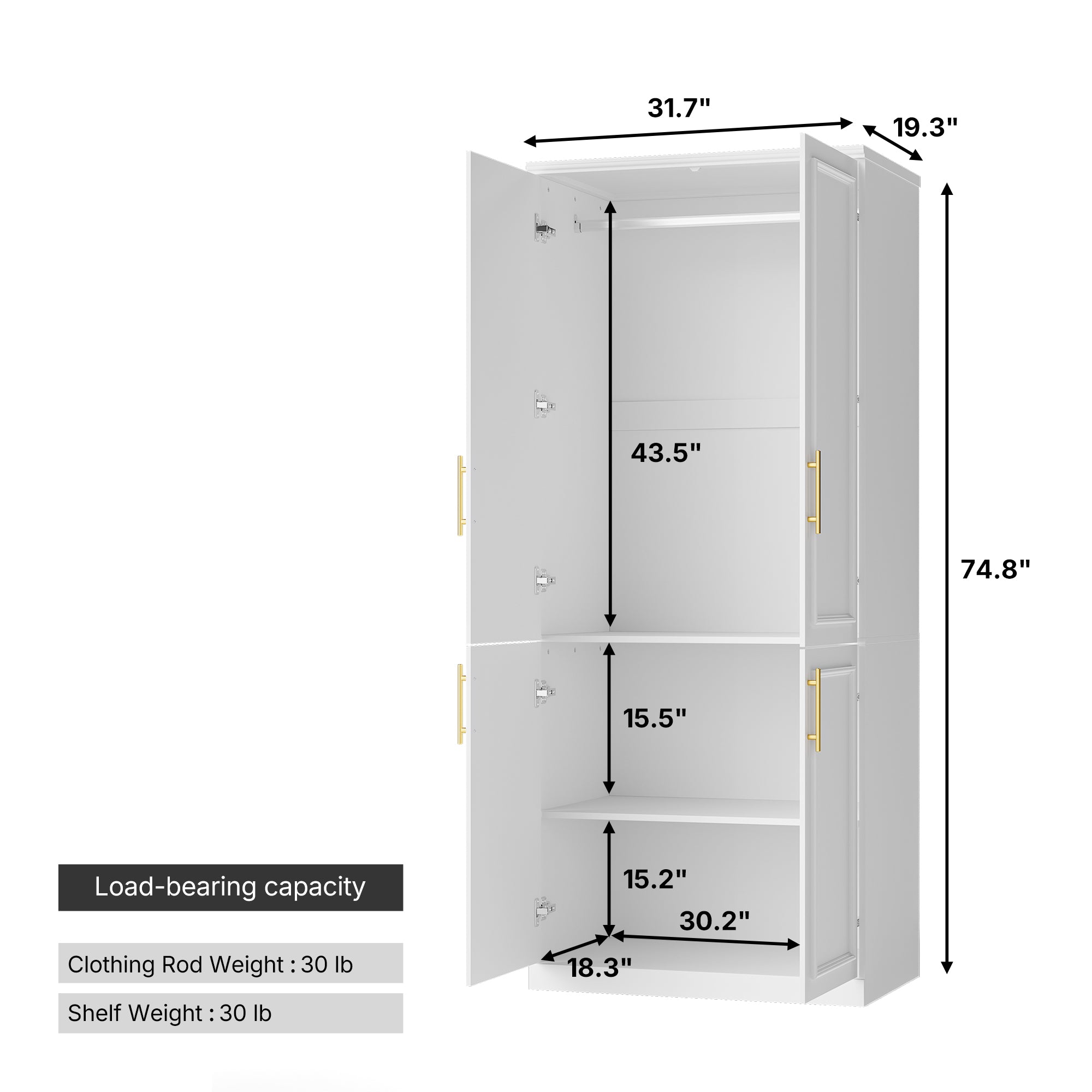 | Clothing Rod Width - Side to Side | 30.2'' W |