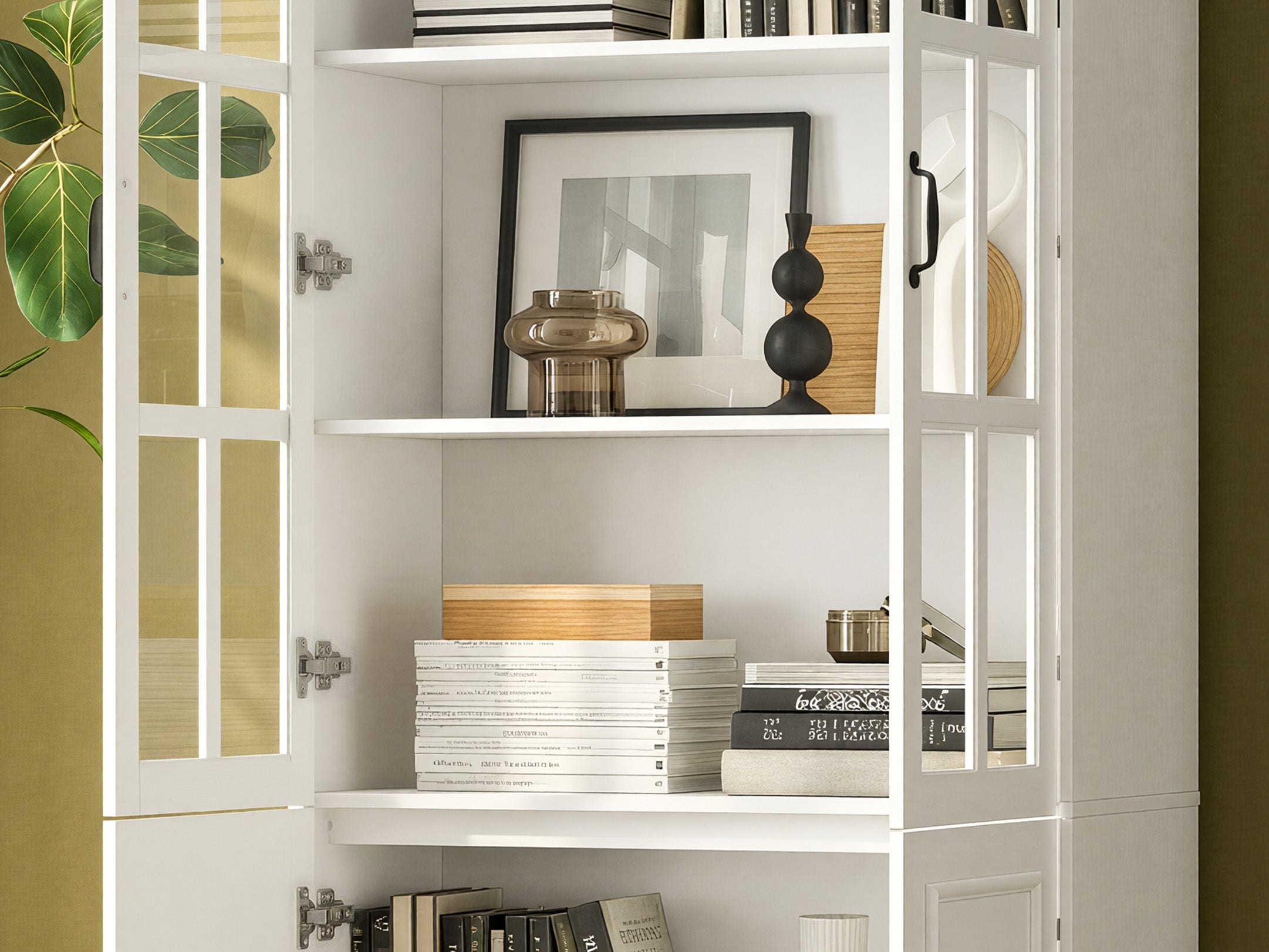 31.5 inches Modern White Standard Storage Bookcase with Glass Door and Shelves