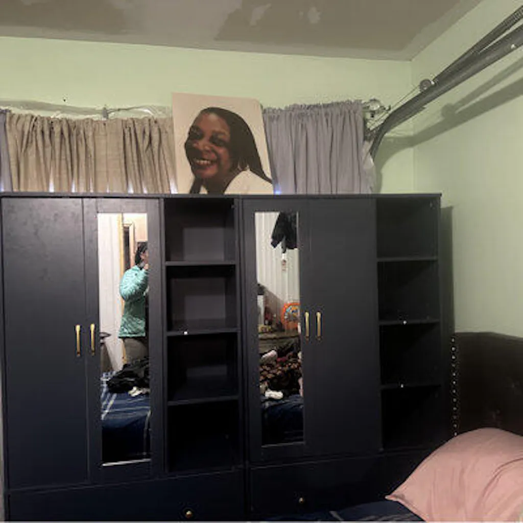 - The wardrobe features mirrored doors that not only enhance the visual appeal of your room but also serve as a full-length mirror for dressing or styling. The mirror adds a sleek touch to the wardrobe's modern design, making it both functional and stylish. It’s perfect for those who appreciate a multi-purpose piece that saves space while looking elegant.