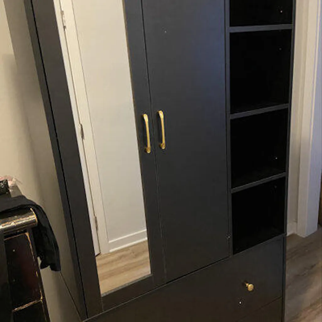 - With multiple compartments designed for different uses, this wardrobe helps you organize your belongings efficiently. It features a dedicated space for hanging clothes, as well as separate sections for folded items like towels, bedding, and accessories. The spacious drawers at the bottom are perfect for storing smaller items, keeping everything neatly stored and easy to access.