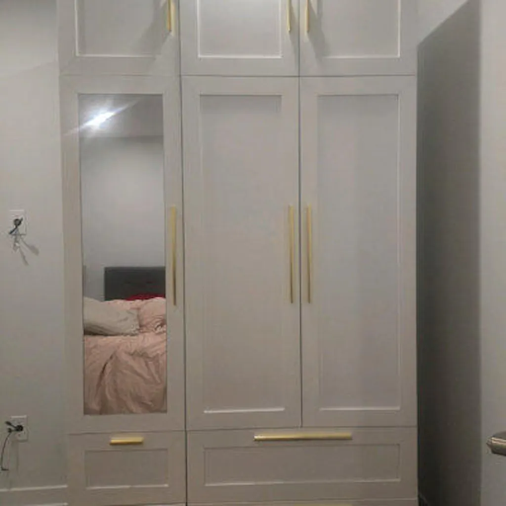 - The back is equipped with an anti tipping device, which tightly fits the wardrobe with the wall and protects the safety of you and your family.