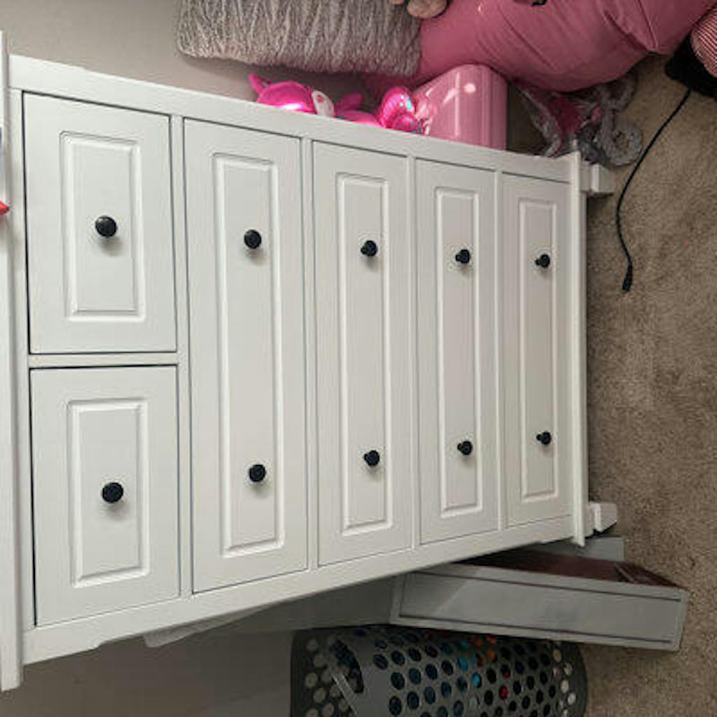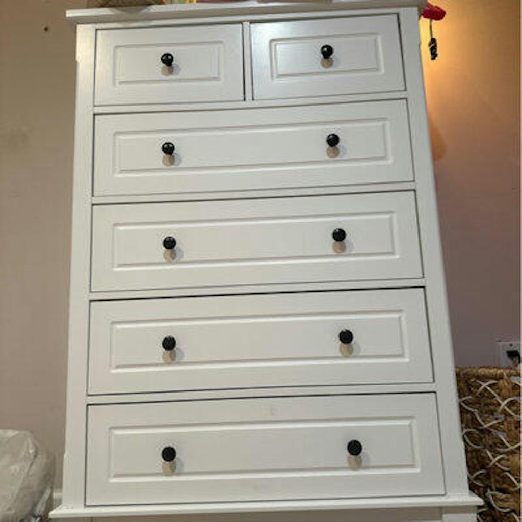 - Six large drawers allow you to store your favorite items by category. The round metal handles are convenient to grasp and open the drawers.