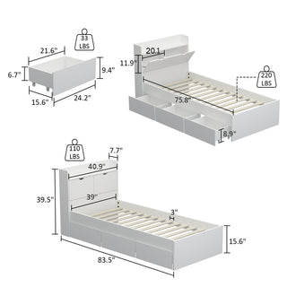 • [Large Storage Capacity] Three drawers under the bed and 2 hidden storage space with flip doors.