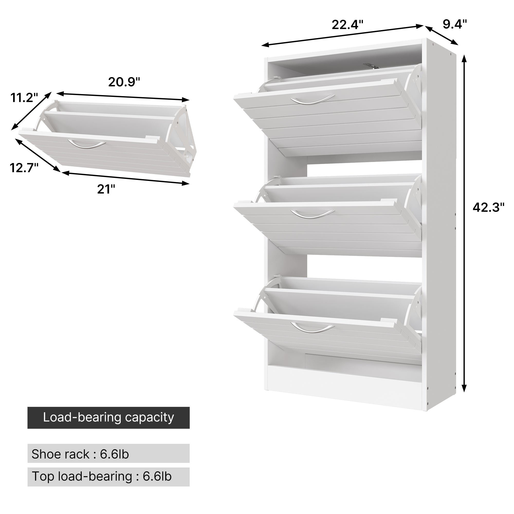 22.4 inches Farmhouse White/Wood 3-Flip Door Shoe Cabinet Organizer for Hallway Entryway
