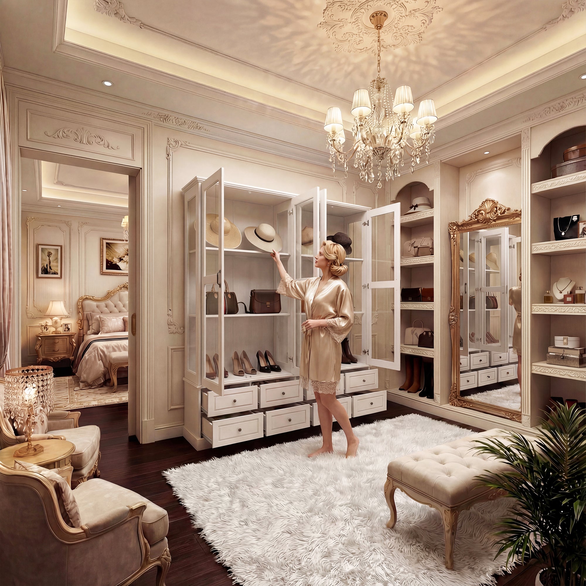 This elegant display cabinet is designed to be the ultimate organization and style center for your bedroom or walk-in closet. Ideal for creating an inspiring and ultra-functional focal point, this cabinet keeps your prized possessions beautifully organized and bathed in customizable light.