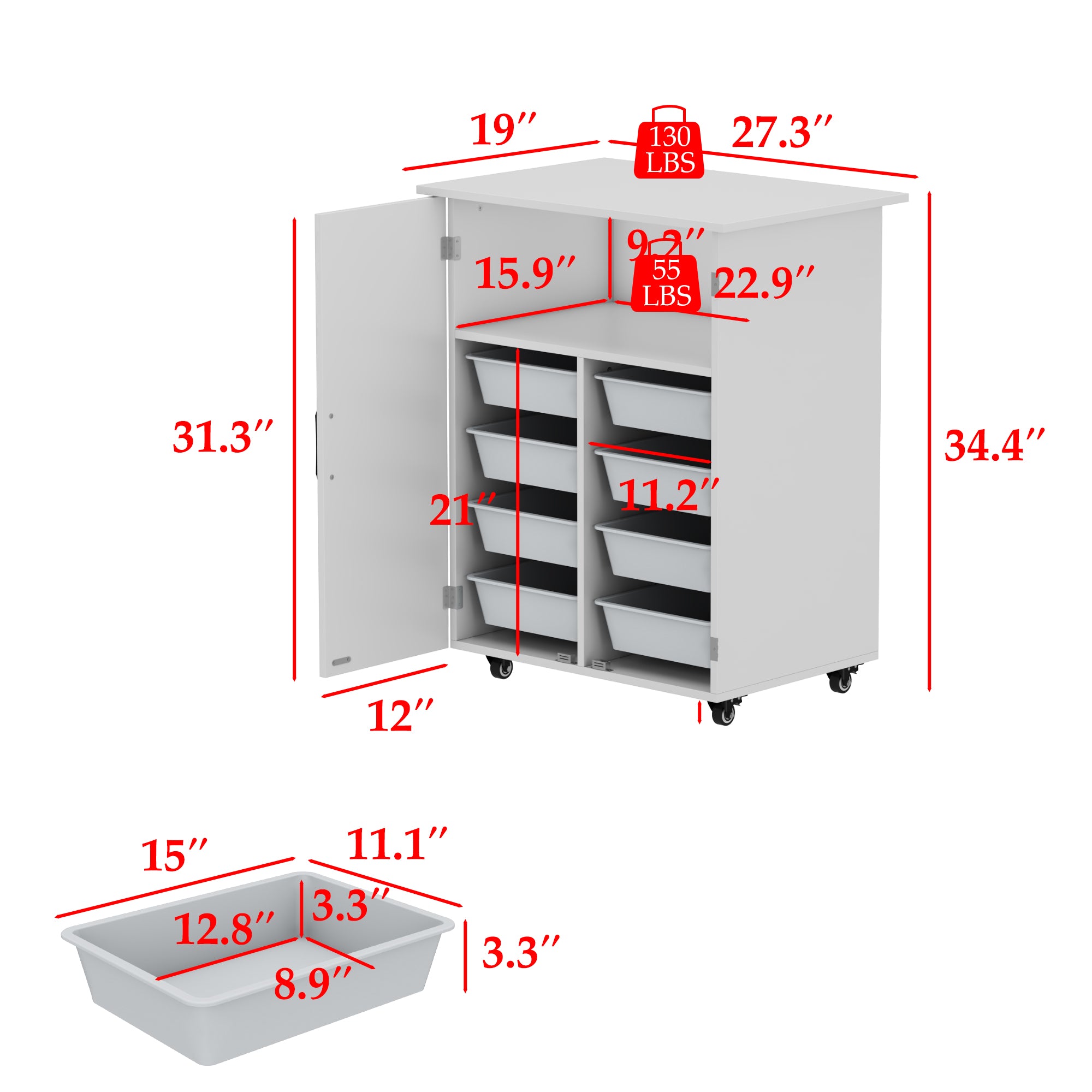 Two Door Craft & Sewing Tables With 8 Baskets And Wheels