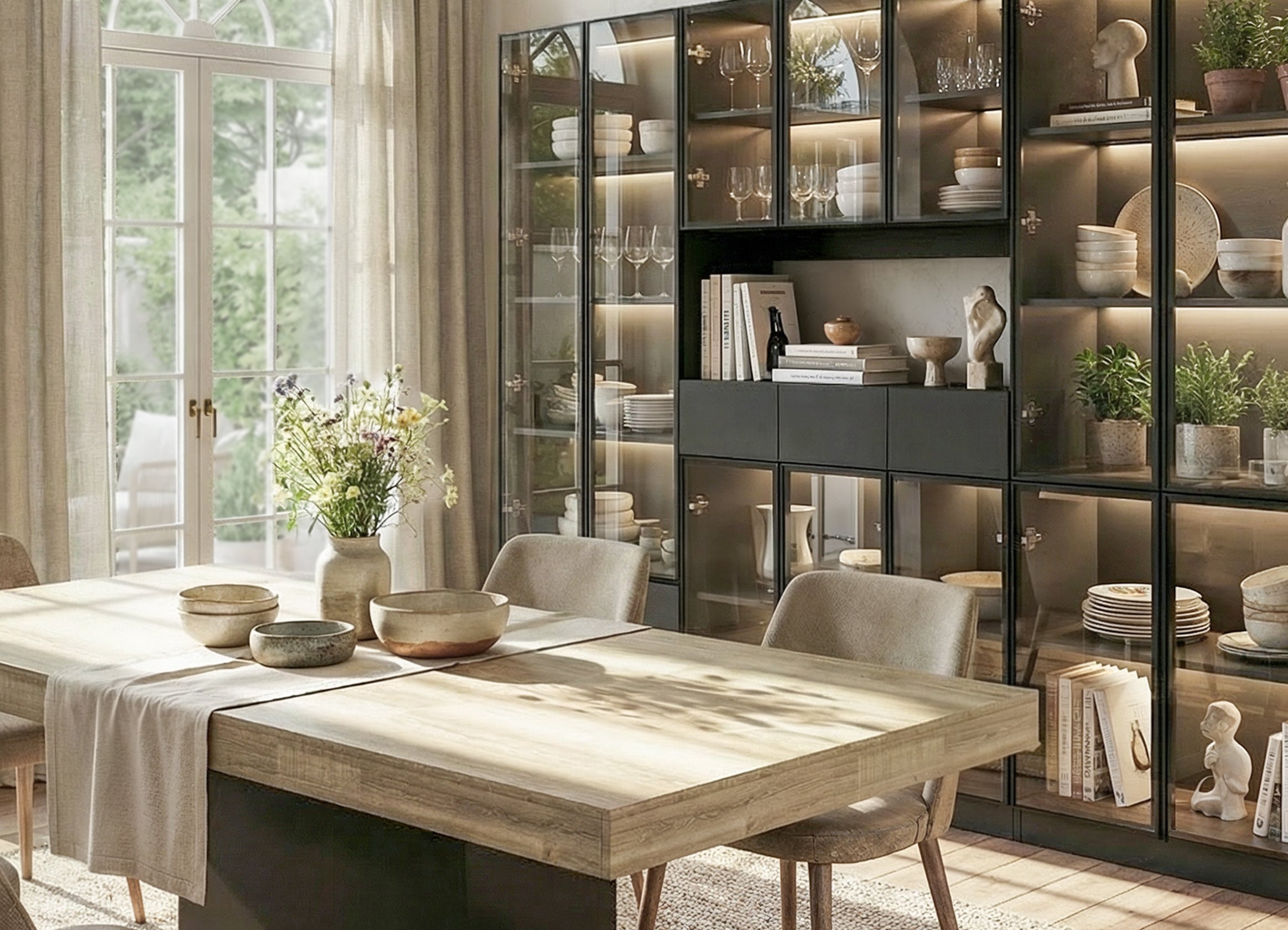 Display Cabinet Bookcase with Lights and Glass Doors
