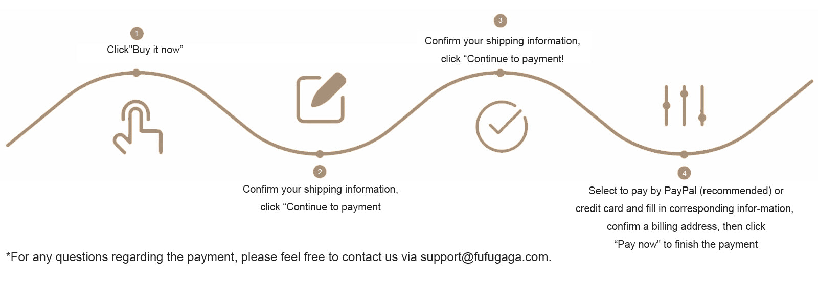 At FUFUGAGA, we take your security and privacy very seriously and we carefully protect your information. When you submit sensitive information via our website, your information is protected both online and offline. To securely process your payment, we use industry leading payment processors including PayPal and Credit Card. When you send sensitive payment information via our website, that information is encrypted using industry-standard encryption protocols including SSL Certification. Wherever we collect sensitive information (such as credit card data), that information is encrypted and transmitted to us securely. On our Shopping Cart page or during the checkout process, you can verify this by looking for a closed lock icon at the bottom of your web browser, or looking for "https" at the beginning of the address of the web page. While we use encryption to protect sensitive information transmitted online, we also protect your information offline. Only employees who need the information to perform a specific job (for example, billing or customer service) are granted access to personally identifiable information. The computers/servers in which we store personally identifiable information are kept in a secure environment.